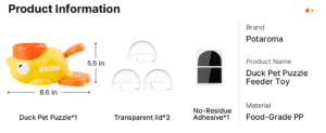 • Fun & Engaging: The cute duck design makes mealtime or treat time more enjoyable.